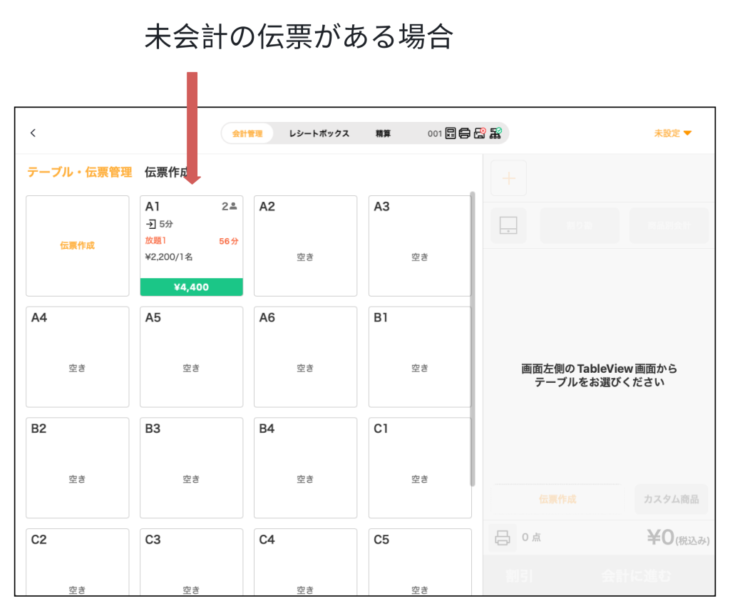 未会計のテーブルがある際に、「そのままレジ操作を続けてよいか」を確認できるお知らせを追加しました。