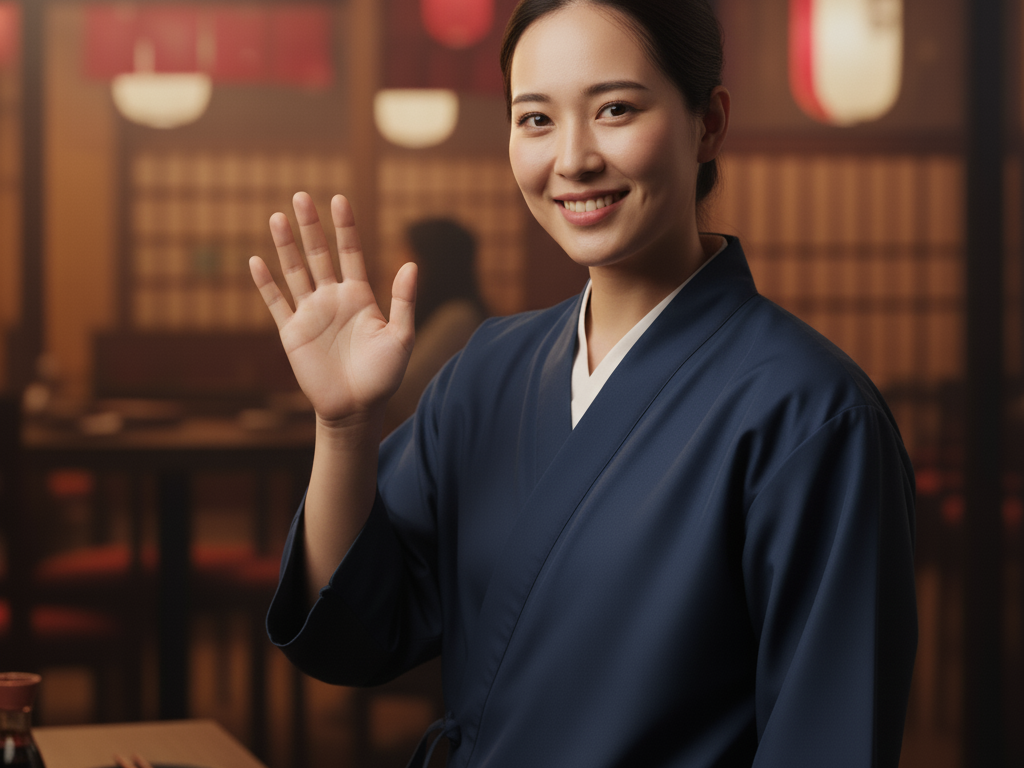 お客様が入店されたら、笑顔で「Hello! How many people?(何名様ですか?)」と尋ねましょう。席にご案内する際は「This way, please.(こちらへどうぞ)」。注文を受ける際は「Are you ready to order?(ご注文はお決まりですか?)」と声をかけ、お客様がメニューを指差したら**「OK, one of this?(はい、こちらがおひとつですね?)」と指で確認**すれば、間違いがありません。
