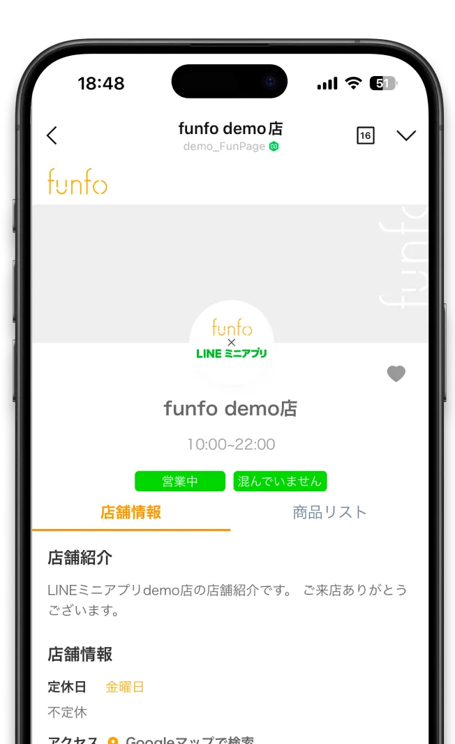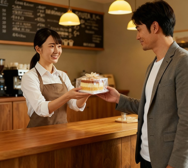 Point 02お客様への通知ご注文内容の準備完了通知をお客様のLINEに送信し、お客様がカウンターなどで料理を受け取ります。料理提供までの待ち時間を削減し、混雑を緩和する事が可能です。 -