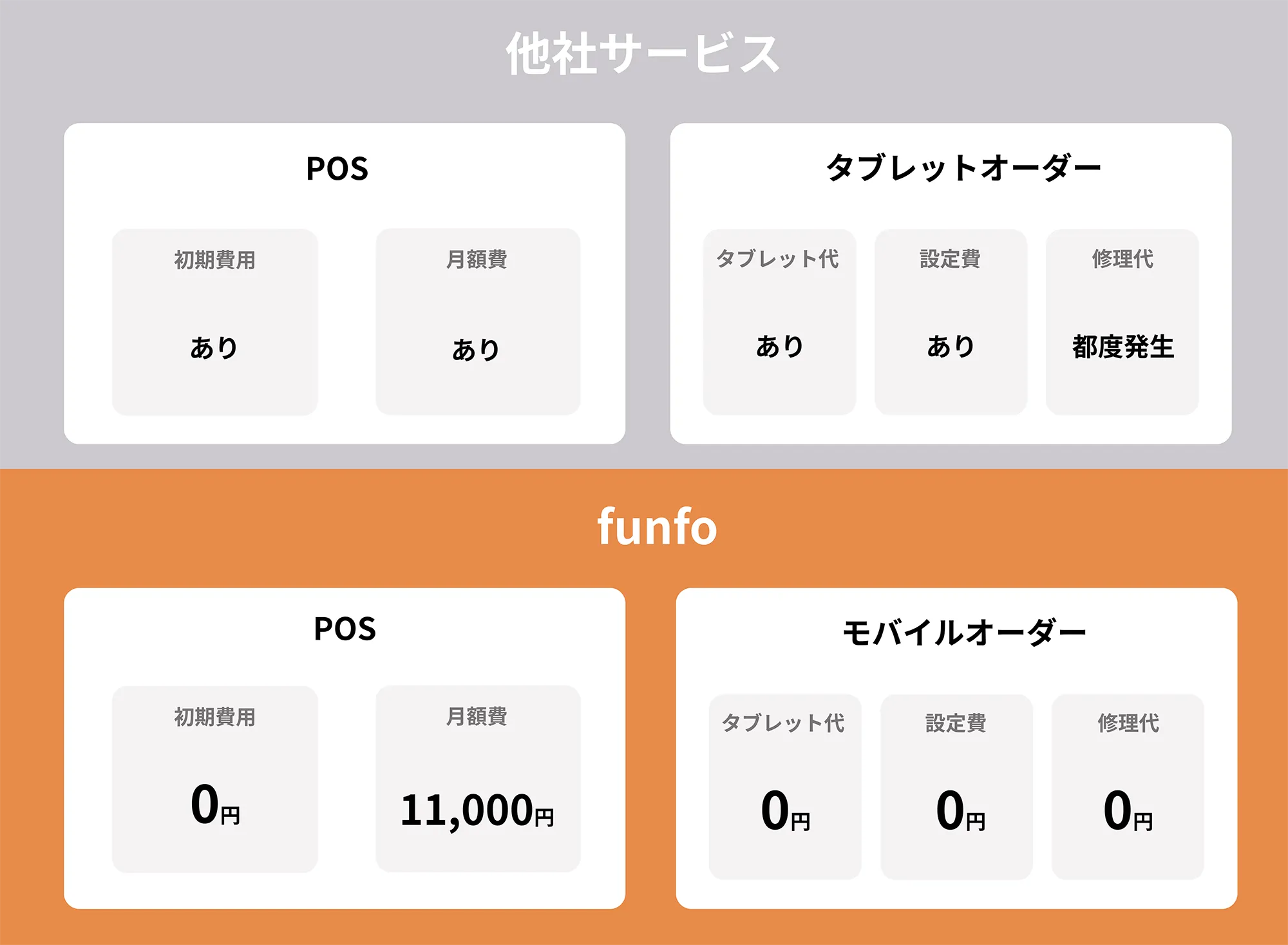 メニュー等の設定のハードルの高さや、ランニングコストをfunfoで解決